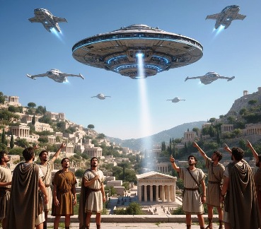 Conform teoriei relativității a lui Einstein, timpul nu este liniar, ci face parte dintr-o structură spațio-temporală. Aceasta înseamnă că trecutul, prezentul și viitorul ar putea coexista. Așadar, dacă totul există simultan în diferite puncte ale spațiu-timpului, s-ar putea oare ca atunci când oamenii antici priveau cerul și descriau „obiecte strălucitoare” sau „care de foc”, ei percepeau de fapt tehnologia umană viitoare dintr-un alt punct al spectrului temporal? Sună nebunește, dar se potrivește cu modul în care multe culturi au descris stelele drept „mesageri ai zeilor”. Poate că pur și simplu descriau ceea ce puteau percepe – sateliți, sonde sau nave spațiale – prin prisma propriei lor înțelegeri.