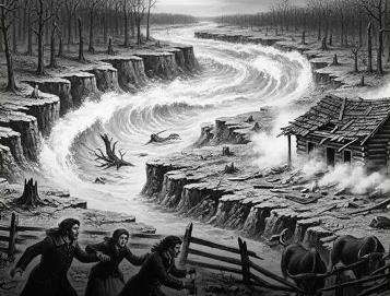 Pe fluviul Mississippi, s-a întâmplat ceva incredibil. John Bradbury, un naturalist scoțian care călătorea cu barca, a fost sculat de puterea cutremurăturii. Când s-a ridicat, a privit cu groază cum fluviul s-a oprit, apoi s-a inversat. Mississippi a început să curgă înapoi. Bărcile erau trase în amonte, navele se ciocneau, iar malurile râurilor se prăbușeau în apele agitate. Insulele dispăreau, iar altele noi se ridicau din adâncuri pe măsură ce fluviul se sfâșia sub undele generate nu de vânt, ci de mișcările pământului de dedesubt.