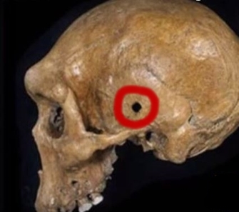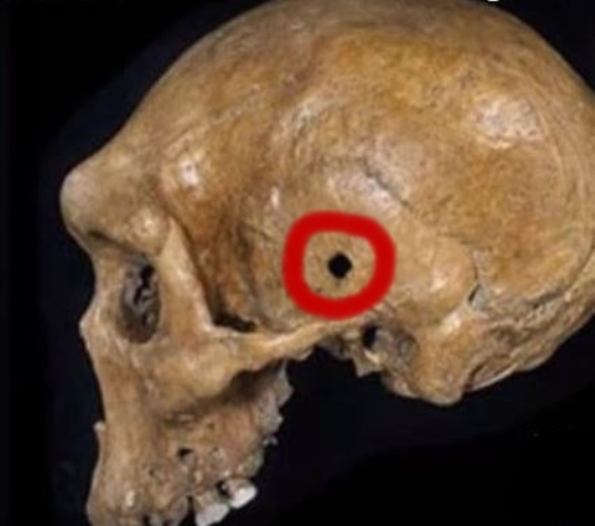 Da… gaura respectivă era o gaură de glonț, în partea stângă a craniului, iar pe partea opusă se observa urma lăsată de glonţul care a ieşit. Oamenii din Neanderthal aveau puşti!?