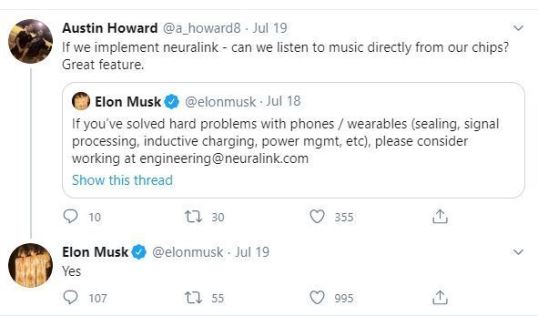 Zilele trecute, Elon Musk a fost întrebat direct pe Twitter de către un specialist în calculatoare, Austin Howard, dacă în cadrul lui Neuralink dacă s-ar putea asculta muzică direct în creierele noastre, fără a fi nevoie de căşti. Răspunsul lui Musk a fost tranşant „DA”.