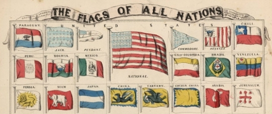 2) De ce un teritoriu „haotic”, neorganizat, ar avea un steag propriu, şi o heraldică proprie? Iată mai jos un extras dintr-o Enciclopedie Americană din 1865, în care apare în „steagurile naţiunilor”, steagul Tartariei – un dragon (în centru jos):