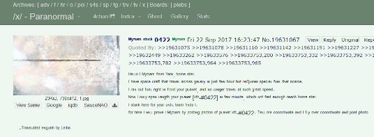 Pe forumul 4chan (arhiva apare pe 4plebs.org) s-a ivit în 2017 un dialog bizar între un aşa-zis extraterestru pe nume Myziam şi utilizatorii săi. Desigur, e posibil ca totul să fie o farsă, dar, haideţi să vedem dialogul halucinant: