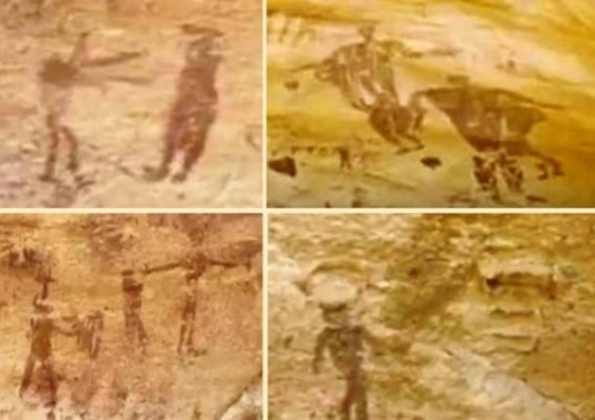 O peșteră misterioasă de la granița dintre Egipt și Libia a devenit „şi mai misterioasă” atunci când antropologii care au studiat amprentele mici de pe pereții peşterii au concluzionat că acestea nu provind de la oameni, ci de la reptile. Şi mai mai ciudat decât atât, figurele desenate pe perete, lângă amprente, arată atât oameni cât și ceea ce par a fi fiinţe hibride oameni-animale. Ce se întâmpla în Egipt în urmă cu 8.000 de ani!?