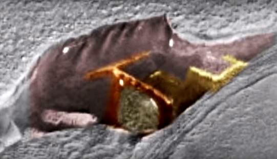 Acum… revenind la structura bizară de pe Marte, care seamănă cu o poartă stelară, poza originală poate fi accesată AICI: arizona.edu. Judecând după formele drepte care formează întreaga arhitectură şi după peretele circular din stânga, pare a fi mai degrabă o structură artificială decât una naturală. Această structură pare a fi îngropată sub un munte marţian, acoperit de nisip. De aceea, e posibil ca întreaga structură să fie mult mai mare.