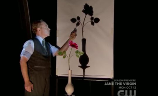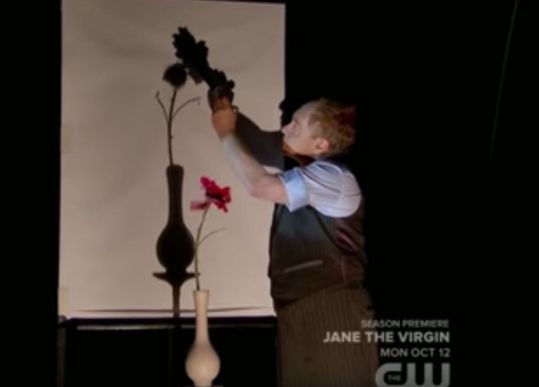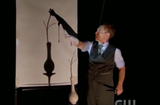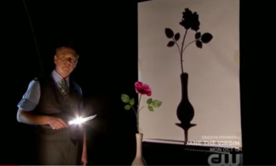 Aşadar, în faţă se află o floare, care este luminată din faţă, iar umbra ei se reflectă pe o pânză albă. Cu un simplu cuțit, Teller taie frunzele şi floarea de pe umbră (pânză), ca și cum ar face același lucru cu floarea reală, care aruncă umbra. Şi, în momentul în care taie umbra unei frunze sau umbra florii, exact în acel moment, floarea şi frunzele adevărate cad jos!