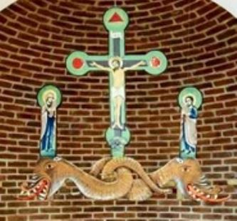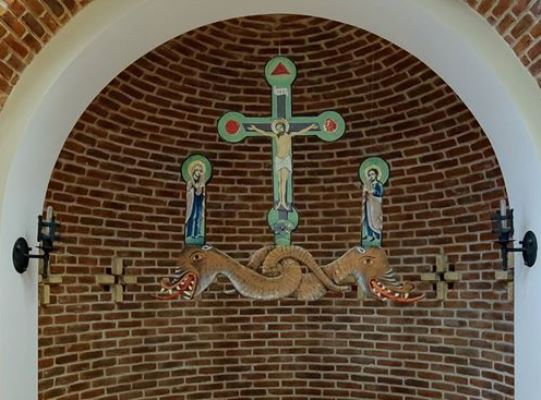 Priviţi imaginea de la începutul articolului… În ea se poate observa un mic altar, ce îl are pictat pe pereţi pe Iisus Hristos crucificat, iar în stânga şi dreapta Sa apar pictaţi Maica Domnului şi încă un sfânt. Sub cei doi sfinţi, apar doi şerpi (balauri) încolăciţi. Balauri care reprezintă simbolul Satanei.