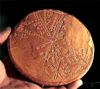 Undeva la sfârşitul secolului al XIX-lea, în anticul oraş antic Ninive din Iraq (una dintre cele mai vechi aşezări umane din lume), în biblioteca subterană a regelui Assurbanipal s-a găsit o tăbliţă circulară de piatră, în care se descrie impactul unui asteroid pe Pământ, probabil cea mai veche relatare de genul acesta. Mult timp s-a crezut a fi o tăbliţă de origine asiriană, însă analiza computerizată a cerului de deasupra Mesopotamiei din anul 3300 î.Hr. a arătat că tăbliţa are o origine sumeriană.
