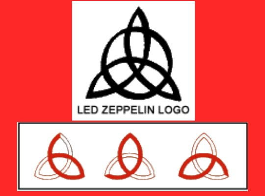 Revenind la simbolul formaţiei Led Zeppelin, acesta era reprezentat de 3 hemisfere lungi interpatrunse, deasupra cărora era aşezat un cerc, aşa cum puteţi observa mai jos. Dar, acestea sunt reprezentarea a 3 cifre de 6 interpatrunse, adică a lui 666, numărul Fiarei din Biblie!