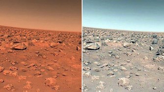 Acesta este motivul pentru care fotografiile realizate de robotul Rover de pe Marte reflectă o suprafață marțiană cu o varietate de tonuri de culoare. Fotografii de pe Marte, realizate în 1976, arată un cer albastru din cauza ajustării speciale a echilibrului între nuanţele de alb, care au făcut ca Marte să arate foarte mult cu suprafaţa Pământului. Una dintre ultimele fotografii ale suprafeței marțiene relevă o suprafață albăstruie-gri.