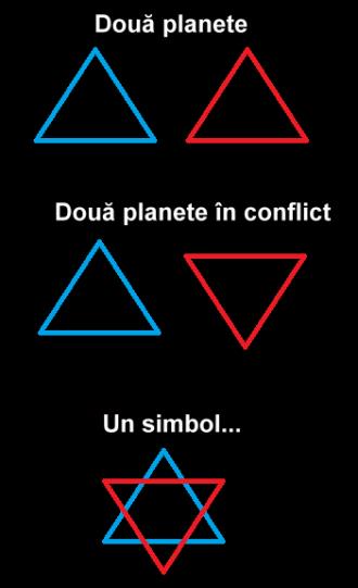 Dar, conform materialului de care am adus aminte la începutul articolului, suprapunerea celor două triunghiuri ar avea următoarea semnificaţie: