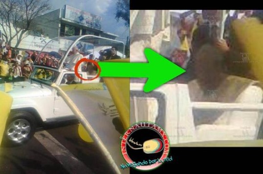 Astfel, pe site-ul mexican internautamx.com se analizează o poză controversată din timpul vizitei Papei în Mexic, atunci când se plimba cu „Papamobilul”. Poza a făcut „ravagii” pe reţelele de socializare din Mexic. În spatele Papei Francisc se afla aşezat un cardinal, dar, din poza controversată, chipul cardinalului pare că dispare, iar locul său apare ceva… fantomatic! Cel care a iscat discuţia pe reţelele de socializare spune că ar fi vorba de… fantoma fostului papă, Ioan Paul al II-lea!