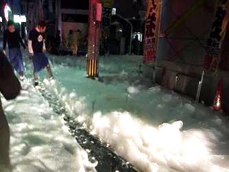 Un covor inexplicabil de bule spumoase a umplut străzile din centrul orașului japonez Fukuoka, în primele ore ale dimineții de sâmbătă, 16 aprilie 2016, la scurt timp după un cutremur devastator cu magnitudinea de 7,3 care a zguduit orașul. Utilizatorii Twitter au postat imagini cu spuma misterioasă, unul dintre ei numind-o drept „dezgustătoare”.