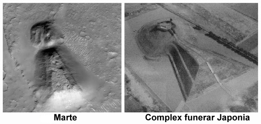 E adevărat că unele presupuse structuri artificiale de pe Marte pot fi respinse ca fiind pareidolii, dar masivul monument marţian are asemănări fascinante cu un complex funerar din Japonia, ridicând speculațiile că o civilizație antică a locuit pe Marte poate chiar cu milioane de ani în urmă.