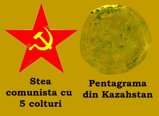 P.S. Numai că explicaţia aceasta nu ţine. Priviţi, în imaginea de mai jos, cum arată pentagrama din Kazahstan şi cum arată steaua comunistă: