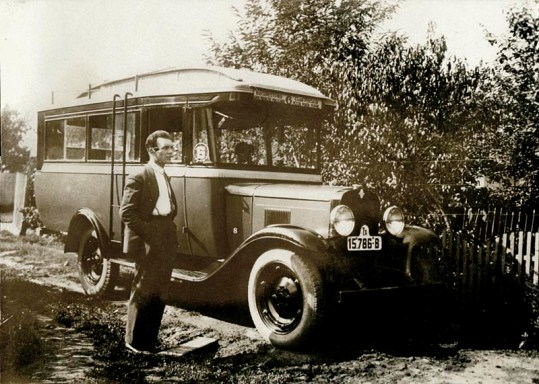 „Autobuz Chevrolet particular în august 1930, proprietar Ionel Mergheru, străbunicul unei colege de birou. Afişajul traseului (de inspiraţie sovietică, desigur