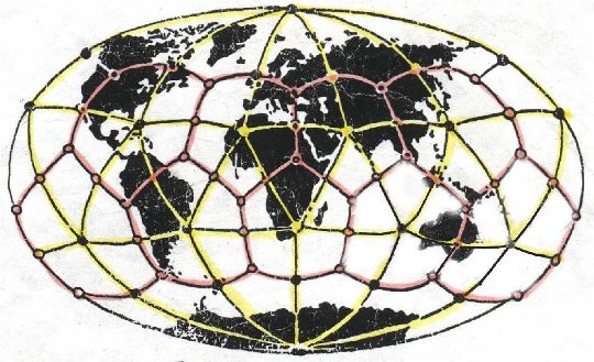 Iată reţeaua de energie „cristalină” a Pământului. În intersecţia punctelor de pe continente s-au construit diverse monumente megalitice.