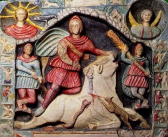 Originea şi istoria cultului lui Mithra în părţile acestea a rămas însă o enigmă până în zilele noastre. Pe monumentele figurate din epoca romană, zeul Mithra este înfăţişat ca un tânăr de o frumuseţe extraordinară, sacrificând un taur într-o peşteră. Pe aceste table de sacrificiu, zeul ne apare îmbrăcat în costumul naţional dac, cu o cămaşă cam lungă, încins peste mijloc şi având pe umeri o mantie fluturândă, ce-i ajunge până din jos de genunchi. Pe cap, zeul poartă căciula naţională dacă, cu vârful ţuguiat, rotunjit şi plecat înainte, iar pe umeri îi descind plete lungi, după datina pelasgă, ori un păr frumos buclat. Cu mâna stângă, el prinde viguros taurul de un corn, ori de bot, ridicându-i capul în sus; cu genunchiul stâng îi apasă spatele, îl încovoaie şi îl supune la pământ, iar cu mâna dreaptă îi întinge pumnalul în gât, îndreptându-şi în acelaşi timp ochii către cer.